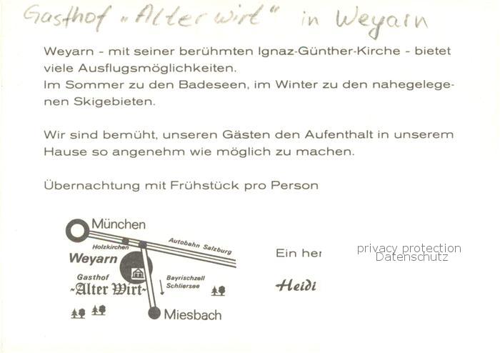 73758038 Weyarn Gasthof Alter Wirt postalisch nicht gelaufen Werbekarte (keine Postkarte) Erhaltung siehe scans [LiesaD40] KatCode: 11110009182137