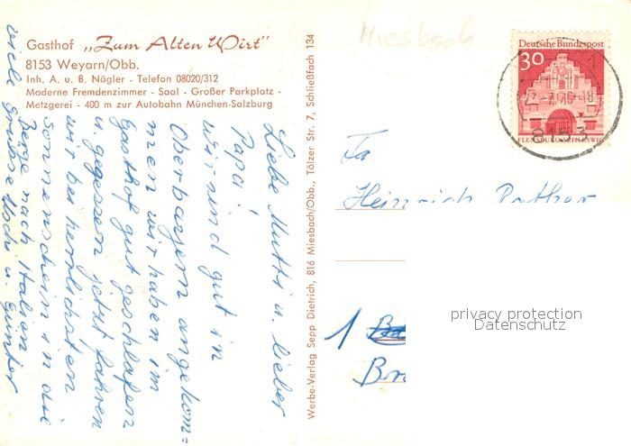73662526 alte Postkarte Weyarn Gasthof Zum alten Wirt Gaststube postalisch gelaufen Erhaltung siehe scans [FriedD77] KatCode: 11110009182137