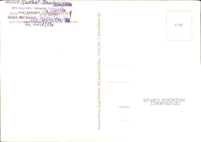 72231162 Weyarn Hotel Gasthof Bruckmuehle Muehltal postalisch nicht gelaufen Erhaltung siehe scans KatCode: 11110009182137