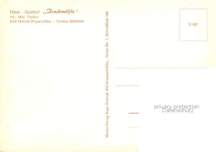 73643340 Weyarn Hotel Gasthof Bruckmuehle Muehltal postalisch nicht gelaufen Erhaltung siehe scans [WerneD78] KatCode: 11110009182137