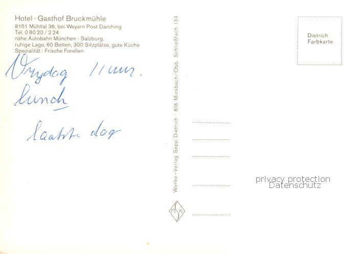 73813199 Weyarn Hotel Gasthof Bruckmuehle postalisch nicht gelaufen Erhaltung siehe scans [WerneD78] KatCode: 11110009182137