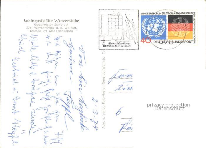72098786 alte Postkarte Weyher Pfalz Weingaststaette Winzerstube postalisch gelaufen Erhaltung siehe scans KatCode: 11110007337084