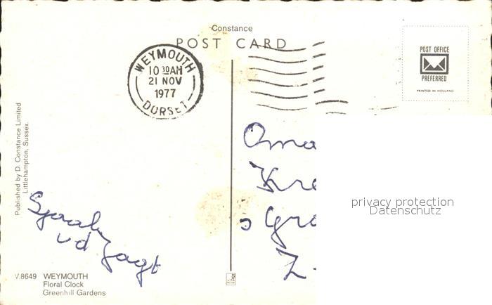 old postcard Weymouth Dorset Blumenuhr postalisch gelaufen Erhaltung siehe scans