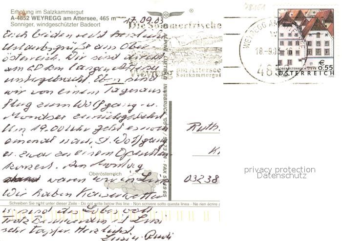 73049190 alte Postkarte Weyregg Attersee Fliegeraufnahme postalisch gelaufen Erhaltung siehe scans [KathaD81] KatCode: 11390315041749