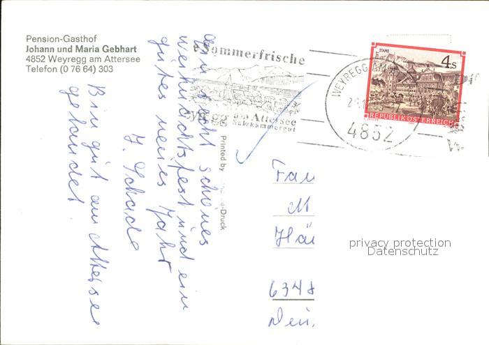 72429601 alte Postkarte Weyregg Attersee Pension Gasthof Foedinger postalisch gelaufen Erhaltung siehe scans KatCode: 11390315041749
