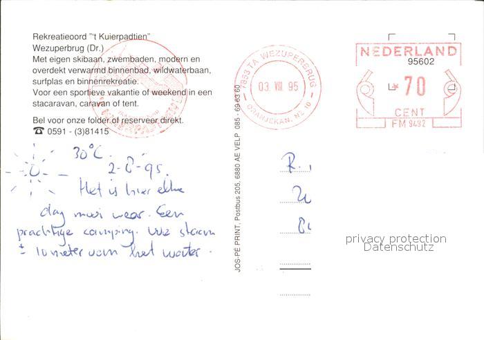 old postcard Wezuperbrug Rekreatieoord t Kuierpadtien Schwimmbad Rutschbahn Tretboot postalisch gelaufen Erhaltung siehe scans