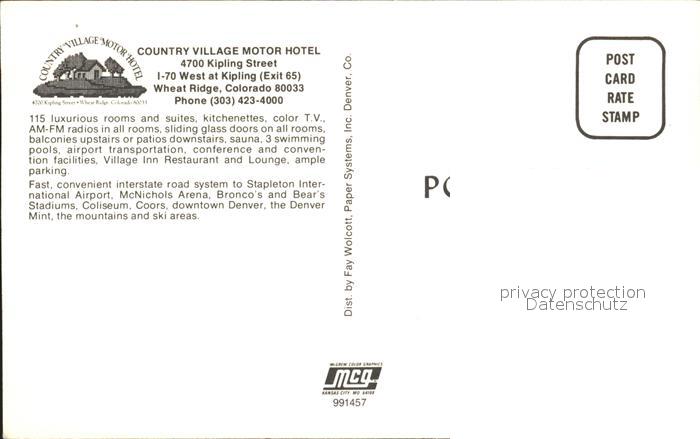 72306822 Wheat Ridge Country Village Motor Hotel postalisch nicht gelaufen Erhaltung siehe scans KatCode: 14140060000000