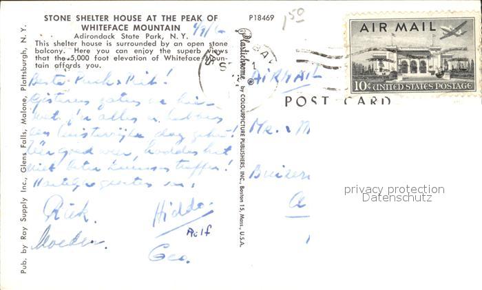 72286541 old postcard Whiteface Mountain Stone Shelter House at the Peak postalisch gelaufen Erhaltung siehe scans KatCode: 14140460000000