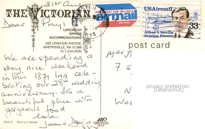 73126090 old postcard Whitinsville Hotel Victorian postalisch gelaufen Erhaltung siehe scans [KathaD81] KatCode: 14140230000000