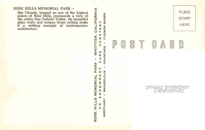 72754155 Whittier California Rose Hills Memorial Park postalisch nicht gelaufen Erhaltung siehe scans [LiesaD40] KatCode: 14140050000000