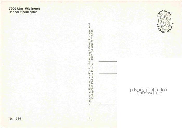 74050048 Wiblingen ULM DONAU BW Benediktinerkloster postalisch nicht gelaufen Erhaltung siehe scans [WerneD78] KatCode: 11110008421000