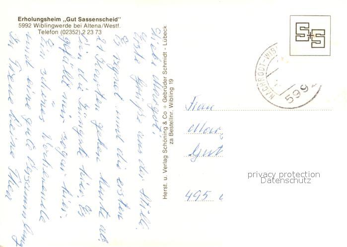 73019262 alte Postkarte Wiblingwerde Erholungsheim Gut Sassenscheid postalisch gelaufen Erhaltung siehe scans [WerneD78] KatCode: 11110005962044