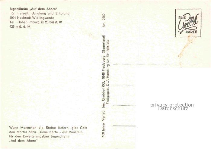 74037668 Wiblingwerde Jugendheim Auf dem Ahorn postalisch nicht gelaufen Fliegeraufnahme Erhaltung siehe scans [FriedD77] KatCode: 11110005962044