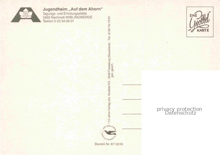 74037674 Wiblingwerde Jugendheim Auf dem Ahorn Kapelle Kinderspielplatz Aufenthaltsraum postalisch nicht gelaufen Erhaltung siehe scans [FriedD77] KatCode: 11110005962044