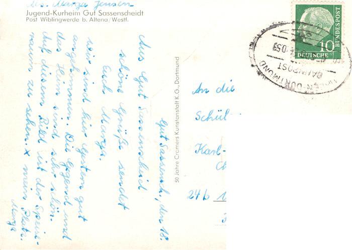 73878565 alte Postkarte Wiblingwerde Jugendkurheim Gut Sassenscheidt Speiseraum postalisch gelaufen Bahnpost Erhaltung siehe scans [FriedD77] KatCode: 11110005962044