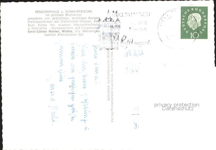 72191630 alte Postkarte Wichte Pension Enst Guenter Walter postalisch gelaufen Erhaltung siehe scans KatCode: 11110006634015