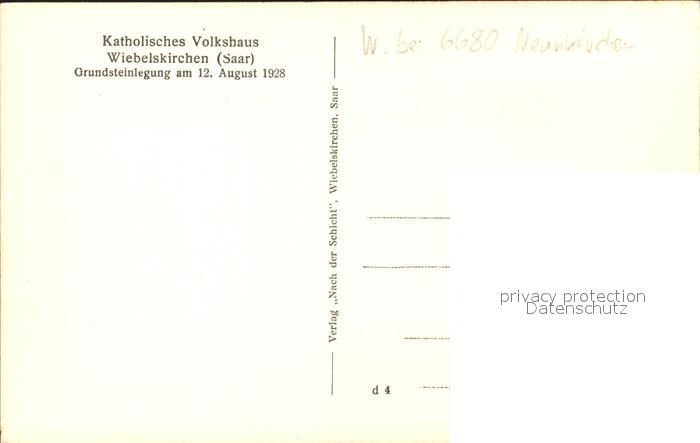 31714594 Wiebelskirchen Katholisches Volkshaus postalisch nicht gelaufen Erhaltung siehe scans KatCode: 11110010043114