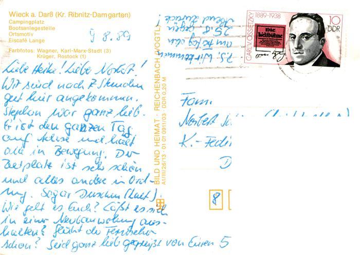73895070 alte Postkarte Wieck Darss Campingplatz Bootsanlegestelle Ortsmotiv EisCafe postalisch gelaufen Erhaltung siehe scans [FriedD77] KatCode: 11110013057091