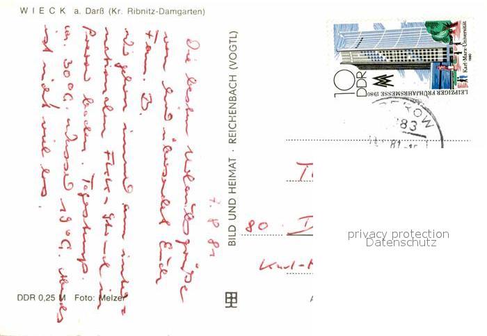 72819452 alte Postkarte Wieck Darss Reetdachhaus postalisch gelaufen Erhaltung siehe scans [KathaD81] KatCode: 11110013057091