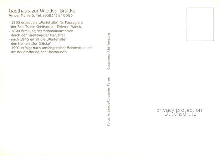 73009291 Wieck Greifswald Gasthaus zur Wiecker Bruecke Gastraeume Bar postalisch nicht gelaufen Erhaltung siehe scans [WerneD78] KatCode: 11110013001000