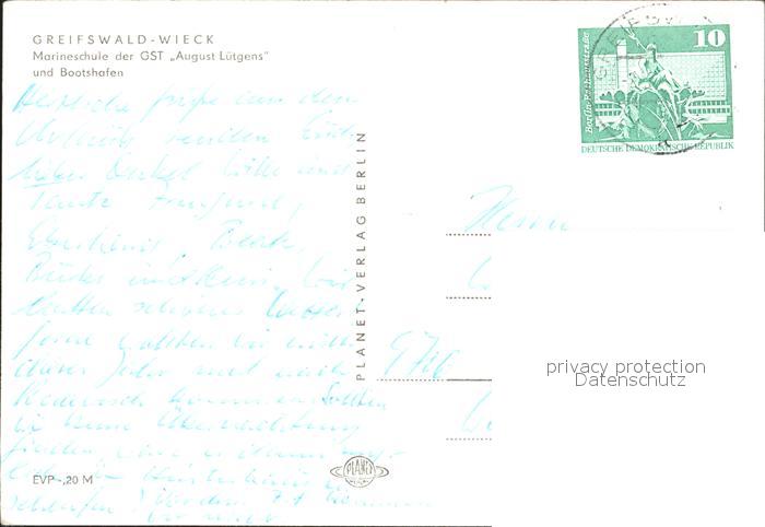 72299365 alte Postkarte Wieck Greifswald Marineschule der GST August Luetgens und Bootshafen Fliegeraufnahme postalisch gelaufen Erhaltung siehe scans KatCode: 11110013001000