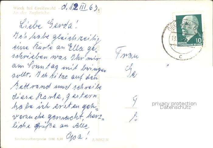 71993176 alte Postkarte Wieck Greifswald Zugbruecke postalisch gelaufen Erhaltung siehe scans KatCode: 11110013001000