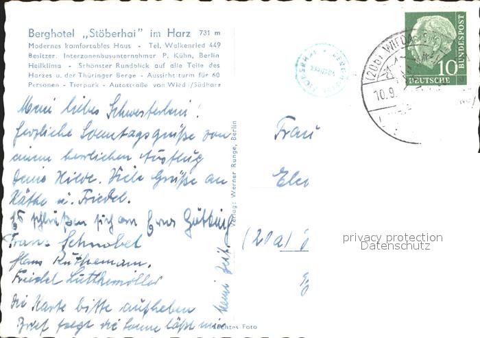 71939322 alte Postkarte Wieda Berghotel Stoeberhai postalisch gelaufen Erhaltung siehe scans KatCode: 11110003156013
