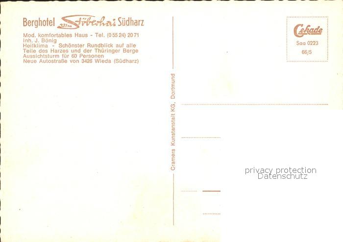 72060136 Wieda Berghotel Stoeberhai Suedharz postalisch nicht gelaufen Erhaltung siehe scans KatCode: 11110003156013