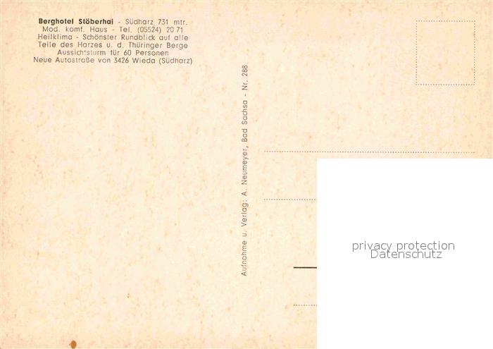 72823361 Wieda Berghotel Stoeberhai Wald Hochsitz postalisch nicht gelaufen Erhaltung siehe scans [FriedD77] KatCode: 11110003156013