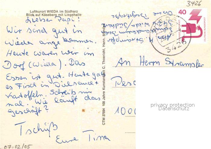 72886894 alte Postkarte Wieda Blick auf Kaeseberg mit Liegehalle postalisch gelaufen Erhaltung siehe scans [WerneD78] KatCode: 11110003156013