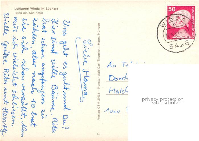 73839778 alte Postkarte Wieda Blick ins Kastental postalisch gelaufen Erhaltung siehe scans [FriedD77] KatCode: 11110003156013