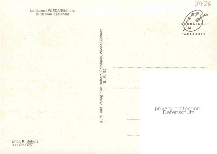 72886893 Wieda Blick vom Kastental postalisch nicht gelaufen Erhaltung siehe scans [WerneD78] KatCode: 11110003156013