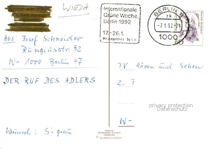 73838282 alte Postkarte Wieda Hotel Krone am Park Gastraum postalisch gelaufen Erhaltung siehe scans [WerneD78] KatCode: 11110003156013