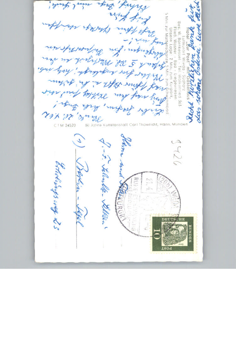 31174596 Wieda Hotel Zur Post postalisch nicht gelaufen KatCode: 11110003156013
