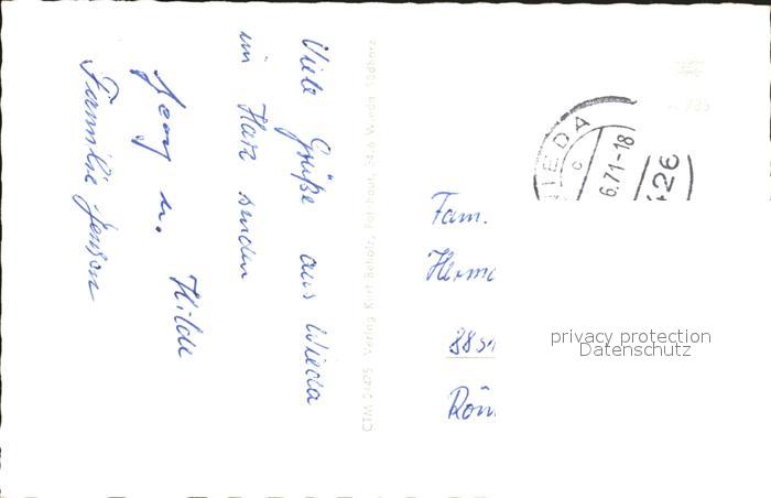 72178615 alte Postkarte Wieda Kreuztalsklippe Blick zur Wache Glockenturm Gemeinschaftshaus postalisch gelaufen Erhaltung siehe scans KatCode: 11110003156013
