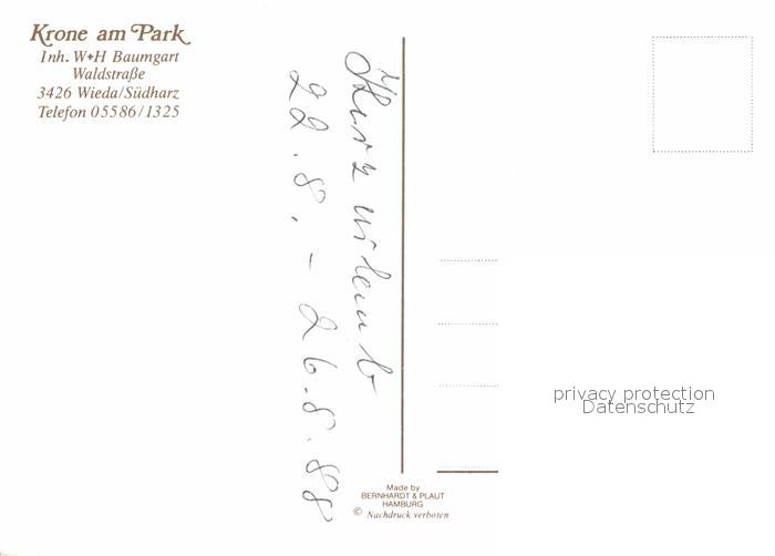 72690710 Wieda Krone am Park postalisch nicht gelaufen Erhaltung siehe scans [NatalD47] KatCode: 11110003156013