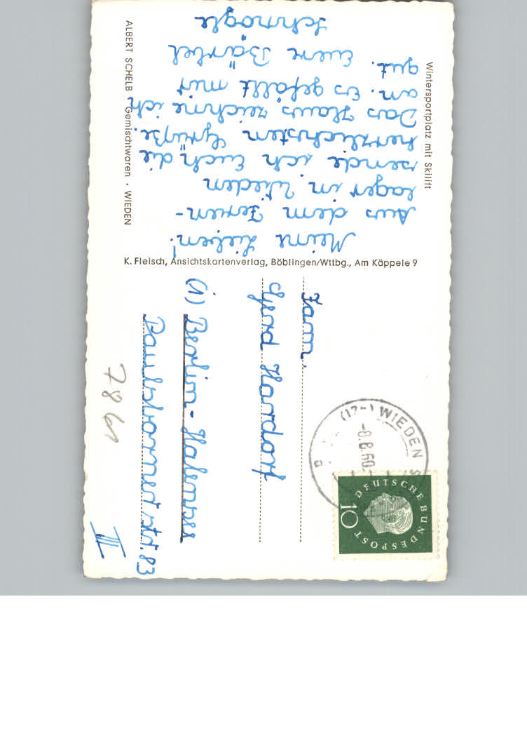 31154508 Wieden Schwarzwald postalisch nicht gelaufen KatCode: 11110008336096