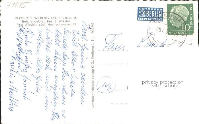71972213 alte Postkarte Wieden Schwarzwald Berghotel Wiedener Eck postalisch gelaufen Erhaltung siehe scans KatCode: 11110008336096
