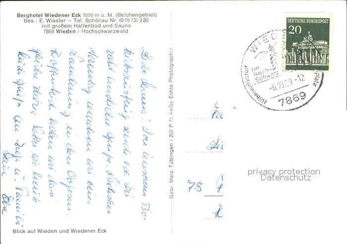 71838032 alte Postkarte Wieden Schwarzwald Berghotel Wiedener Eck postalisch gelaufen Erhaltung siehe scans KatCode: 11110008336096
