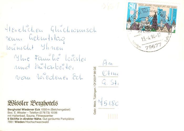 73928357 alte Postkarte Wieden Schwarzwald Berghotel Wiedener Eck postalisch gelaufen Erhaltung siehe scans [WerneD78] KatCode: 11110008336096