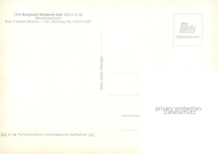 73157739 Wieden Schwarzwald Berghotel Wiedener Eck postalisch nicht gelaufen Erhaltung siehe scans [WerneD78] KatCode: 11110008336096