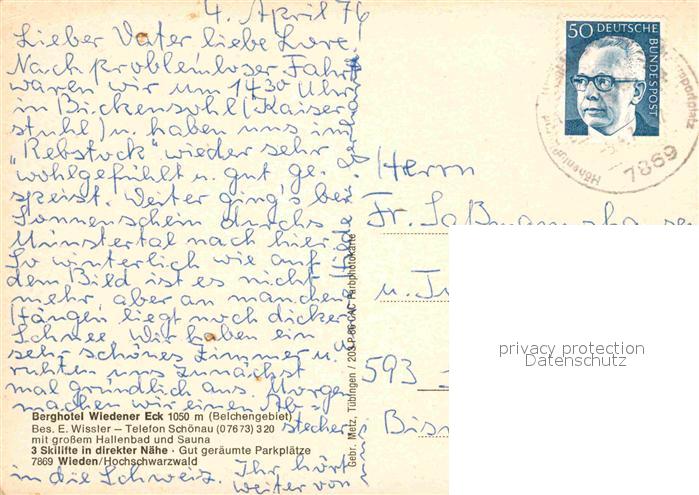 72725435 alte Postkarte Wieden Schwarzwald Berghotel Wiedener Eck Belchengebiet im Winter postalisch gelaufen Erhaltung siehe scans [FriedD77] KatCode: 11110008336096