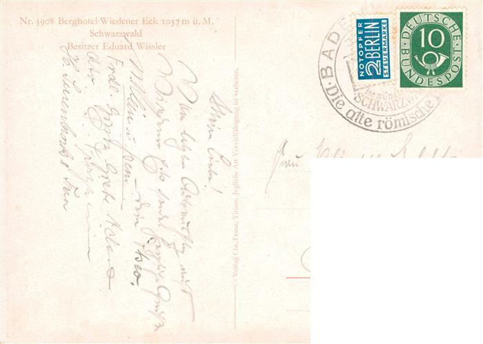 73934713 alte Postkarte Wieden Schwarzwald Berghotel Wiedener Eck Illustration postalisch gelaufen Erhaltung siehe scans [FriedD77] KatCode: 11110008336096