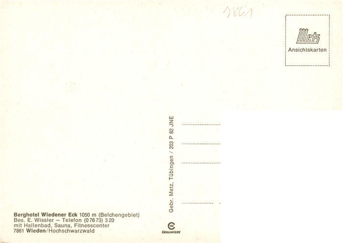 73934992 Wieden Schwarzwald Berghotel Wiedener Eck postalisch nicht gelaufen Erhaltung siehe scans [WerneD78] KatCode: 11110008336096