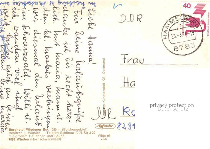 72842731 alte Postkarte Wieden Schwarzwald Fliegeraufnahme Berghotel Wiedener Eck postalisch gelaufen Erhaltung siehe scans [AndreD76] KatCode: 11110008336096