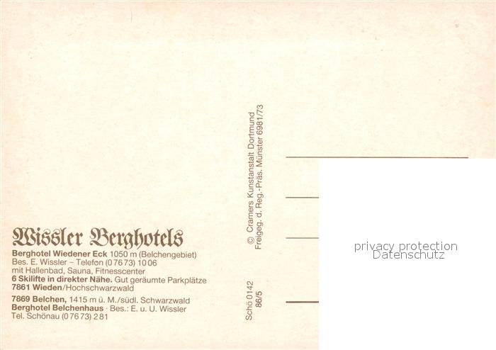73094020 Wieden Schwarzwald Fliegeraufnahme Wissler Berghotels postalisch nicht gelaufen Erhaltung siehe scans [KathaD81] KatCode: 11110008336096