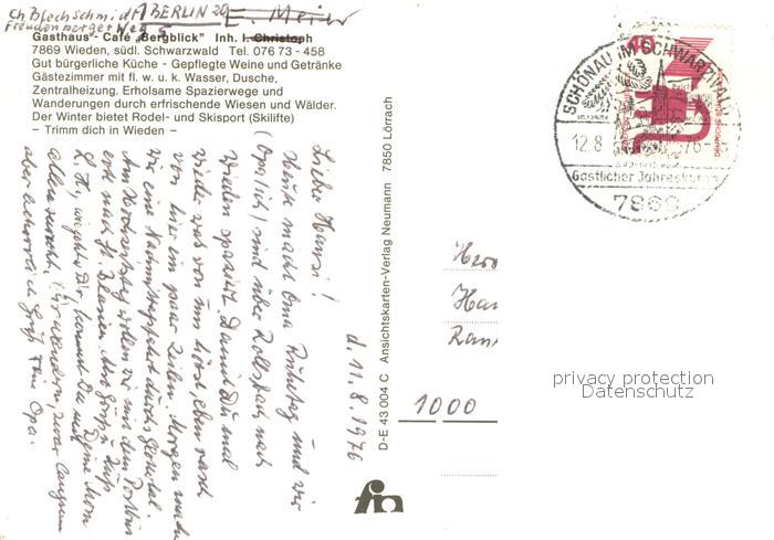 73654165 alte Postkarte Wieden Schwarzwald Gasthaus Cafe Bergblick Trachtengruppe Landschaftspanorama postalisch gelaufen Erhaltung siehe scans [FriedD77] KatCode: 11110008336096