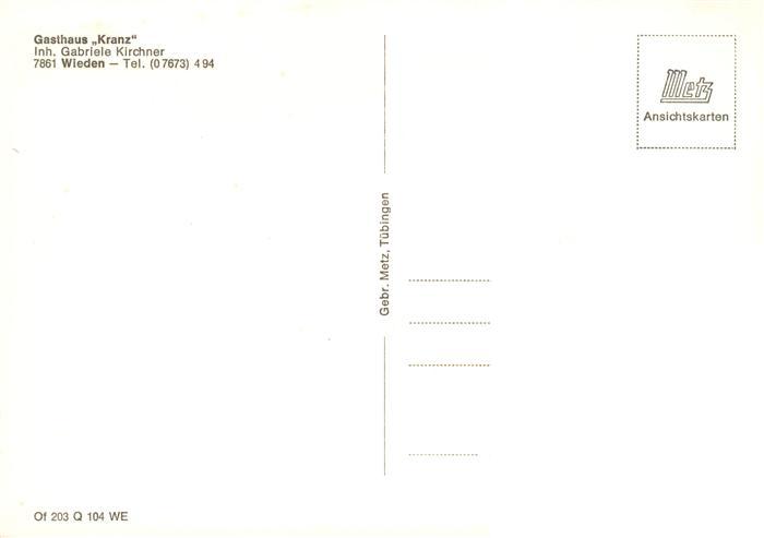 73902183 Wieden Schwarzwald Gasthaus Kranz Gastraeume Panorama postalisch nicht gelaufen Erhaltung siehe scans [WerneD78] KatCode: 11110008336096