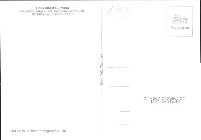 41784429 Wieden Schwarzwald Haus Albert Gutmann postalisch nicht gelaufen Erhaltung siehe scans KatCode: 11110008336096
