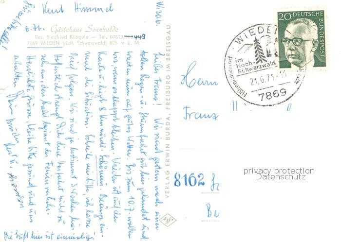 73778961 alte Postkarte Wieden Schwarzwald Haus Sonnhalde Gaststube Panorama postalisch gelaufen Erhaltung siehe scans [WerneD78] KatCode: 11110008336096